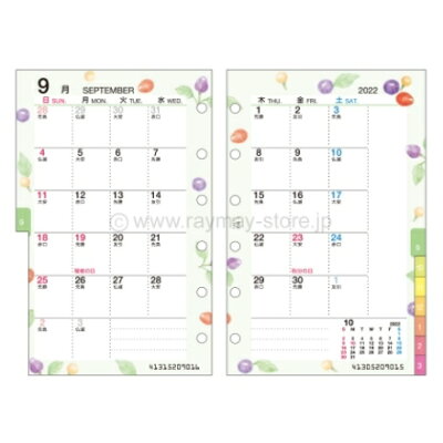 RAYMAY レイメイ 2022年1月始まり システム手帳リフィル 月間式 ミニ6(6穴) ラセ ポケット 月間5 月間+1週間 6穴 a4 a5 m5 日付入り レフィル スケジュール帳 手帳のタイムキーパー