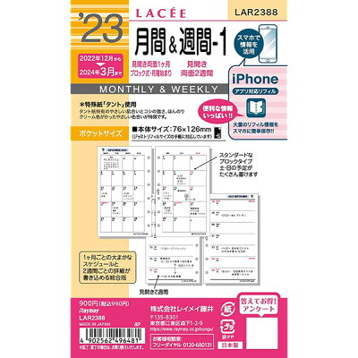 2023年 システム手帳用リフィル ラセ ポケットサイズ ミニ6穴 月間&週間-1 12月始まり レイメイ藤井 LAR2388 - 送料無料※600円以上 メール便発送