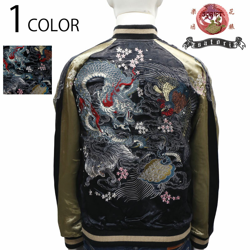 さとり satori 金銀阿吽龍 柄 刺繍 リバ−シブル 和柄 スカジャン(GSJR-009)さとり satori 和柄 スカジャン メンズ 阿吽 龍 龍神 金龍 銀龍 柄 刺繍 リバーシブル SUKAJAN ジャケット アウター スーベニアジャケット レーヨン素材 サテン 送料無料