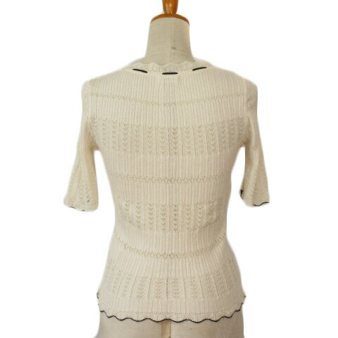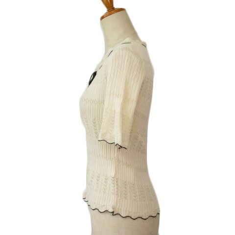 【中古】ロイスクレヨン Lois CRAYON カットソー ニット スカラップ リボン シルク混 M 白 ホワイト レディース 【ベクトル 古着】 220821