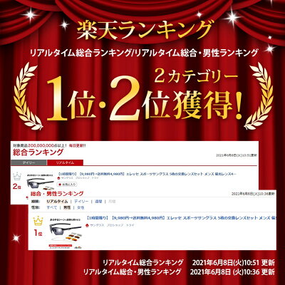 【楽天市場総合ランキング1位獲得】 楽天市場総合 男性部門、スポーツサングラス部門同時1位受賞(2021年6月8日10:36更新リアルタイムランキング) 楽天年間ランキング受賞のエレッセスポーツサングラスがさらに進化!レンズをよりスムーズに交換できるレンズ交換システムを搭載。