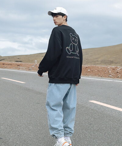 【 人気のペアで着られるシリーズ◇【HOOK】オーバーサイズトレーナー 】 反射プリントのベア柄が施されたユニセックストレーナー! 色はBLACK、GRAY、YELLOW、WHITEの4色展開。