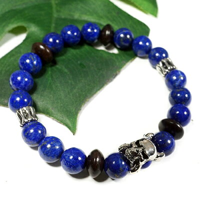 【一点物】スカル(髑髏) ラピスラズリ シルバー ブレスレット 手作り【送料無料】