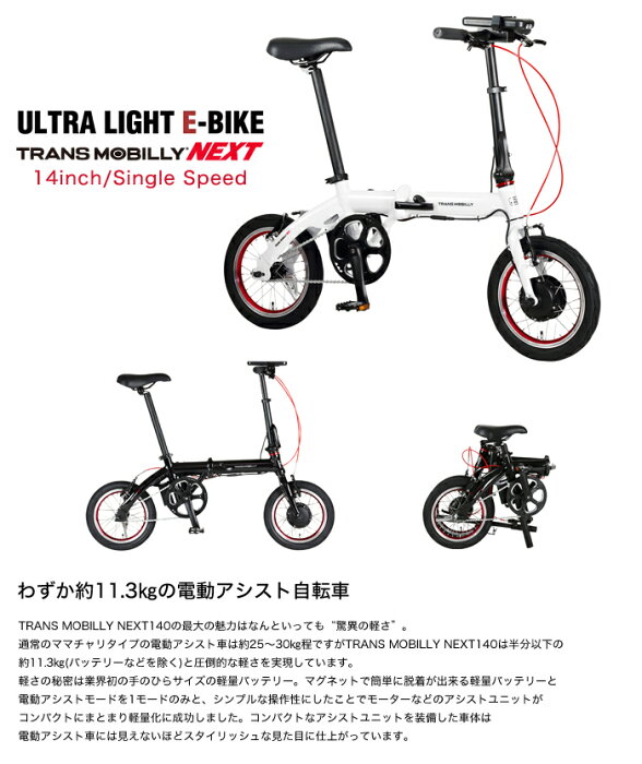 【NET店限定 自転車あんしん保険付】超軽量超小型 折りたたみ電動アシスト自転車 14インチ アルミフレーム トランスモバイリー(TRANS MOBILLY) ULTRA LIGHT E-BIKE AL-FDB140E NEXT【代引可能】