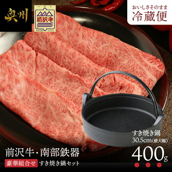 【ふるさと納税】 前沢牛・南部鉄器 すき焼き鍋セット 【奥州市産品の豪華組み合わせ】 (前沢牛肩ロース400g、南部鉄器すき焼き鍋) 【冷蔵発送★お届け日指定をお忘れなく!】 ブランド牛 [U0130]