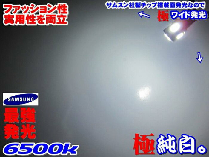 ■T10ウェッジSAMSUNG社製チップLED 6発 24連相当■光量は非常に強いが消費電力が少なく、純正球の約十分の一の消費電力です。