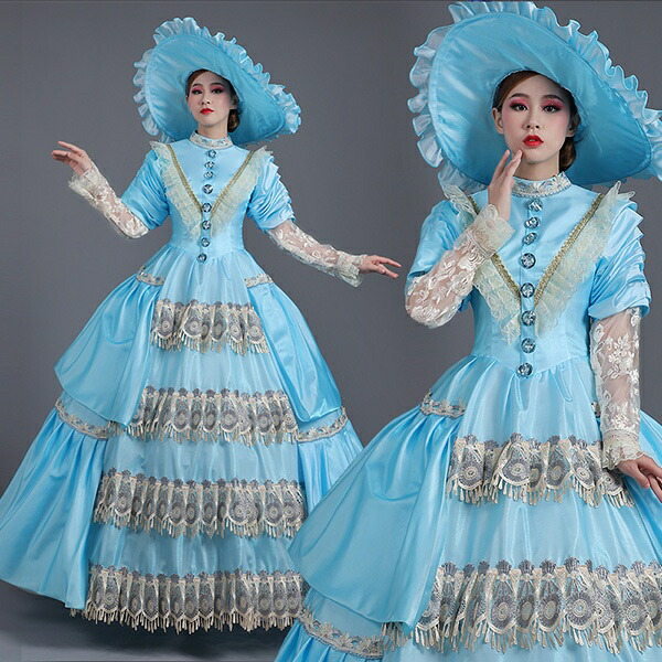 貴族 ドレス ステージ 衣装 舞台 中世貴族風 お姫様 宮廷 お嬢様 貴族ドレス ハイネック 五分袖 パーティー cosply 中世ファスナー 演奏会 ロングドレス ワンピース 刺繍 プリンセスライン フリル Aライン ゴールド