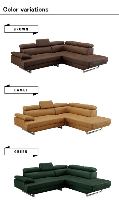 カウチソファー コーナーソファー 幅230cm 4人掛け 4人用 ヘッドギア付き 座面ポケットコイル 撥水加工 レザー調 ファブリックレザー ブラウン キャメル グリーン 選べる3色 大きめ 大型 脚付き 高級感 おしゃれ モダン 布地 布張り 家具 sofa 送料無料