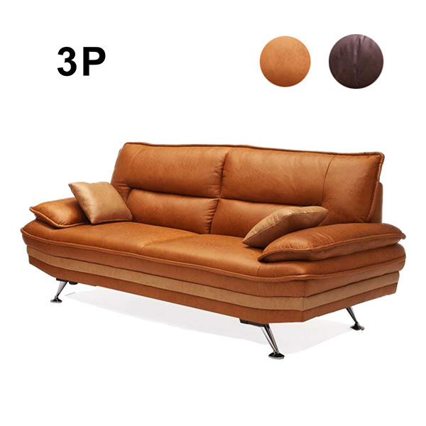 おしゃれ ソファー 3人掛け 3人掛けソファ 幅193cm レザーファブリック ダークブラウン キャメル 選べる2色 クッション2個付き 3人用 3P 黒 肘付き 二人掛け モダン インテリア 完成品 送料無料
