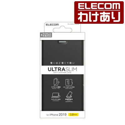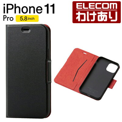 エレコム iPhone 11 Pro 用 ソフトレザーケース 薄型 磁石付 ケース カバー スマホケース 手帳 ソフト レザー シンプル 超軽量 ウルトラスリム 手帳型 ブラック:PM-A19BPLFUBK【税込3300円以上で送料無料】[訳あり][エレコムわけありショップ][直営]